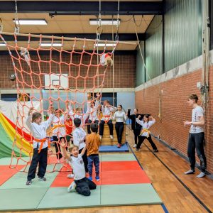 In einem separaten Vortreffen wurde das Konzept erarbeitet, welches Aufbauinhalte, die Verwendung und Platzierung von Geräten und anderen Materialien, Risikoanalyse, aber auch die Story darstellen sollte. Am eigentlichen Dienstag wurde dann bereits gegen 15 Uhr mit den ersten Vorbereitungen angefangen. In den anstehenden 3 Stunden nahm dann so langsam das Konstrukt Parcours Form an, so dass nun gegen 18 Uhr beim Eintreffen der vielen Kempo-Kids incl. der eingeladenen Freunde und Geschwister die Einweisung erfolgen konnte. Es wurde besonders viel Wert auf Freiwilligkeit gelegt, aber auch die Chancen der persönlichen Risikoeinschätzung, das Erfahren der eigenen Grenzen und der Teamgeist standen im Fokus. Die von den beiden Co-Trainerinnen Isa und Melike erarbeitete Story wurde dann als roter Faden durch den gesamten Parcours von beiden Teams genutzt und fand rege Beteiligung bei den Kempoka. Unterstützt und begleitet wurde das persönliche und gemeinschaftliche Erleben von epischer Musik, aber auch andere Technik kam dabei zum Einsatz. An neuralgischen Punkten standen die Trainer und Co-Trainerinnen als helfende und unterstützende Hand bereit. Bis sogar weit ins Erwachsenentraining hinein zeigten sich die Kids begeistert. Am Ende stand dann doch der Abschied von Spannung und Nervenkitzel an; eine kurze Reflexion des Erlebten rundete das gesamte Event ab. Es war durchweg eine gelungene Aktion, die am folgenden Tag von den Kindern der Karl-Leisner-Grundschule ebenfalls genutzt und erlebt werden konnte. Eine Symbiose, die ebenfalls im letzten Jahr bereits bei den Schulkindern als auch Lehrern auf große Begeisterung stieß. Somit hatten alle etwas davon. Fortsetzung folgt!