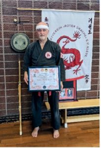 Auch nach 40 Jahren dauerhafter Vereinszugehörigkeit ist das persönliche Engagement ungebrochen, auch wenn nun mit 63 Jahren so manches Wehwehchen Einzug gehalten hat. Das hielt ihn jedoch nicht davon ab, einer weiteren Herausforderung nachzugehen. Der Weg des Schwertziehens (Iaido 居合道) zählt nun zu seiner weiteren Faszination
